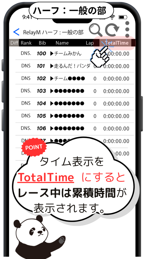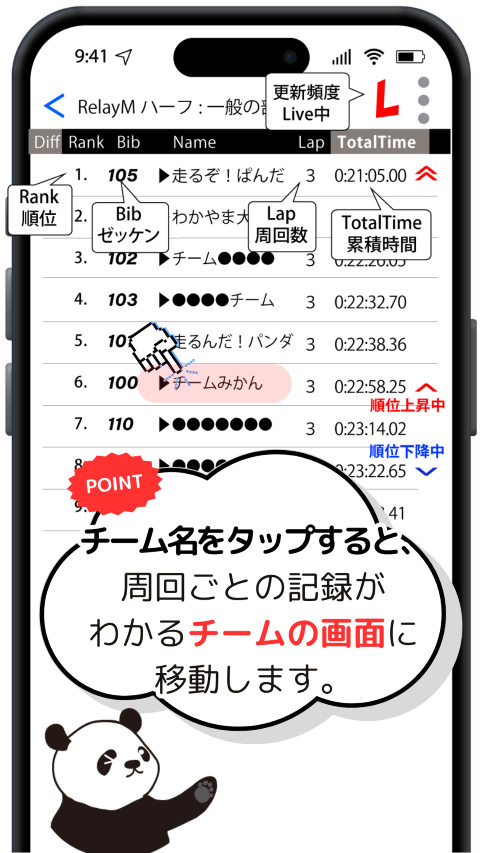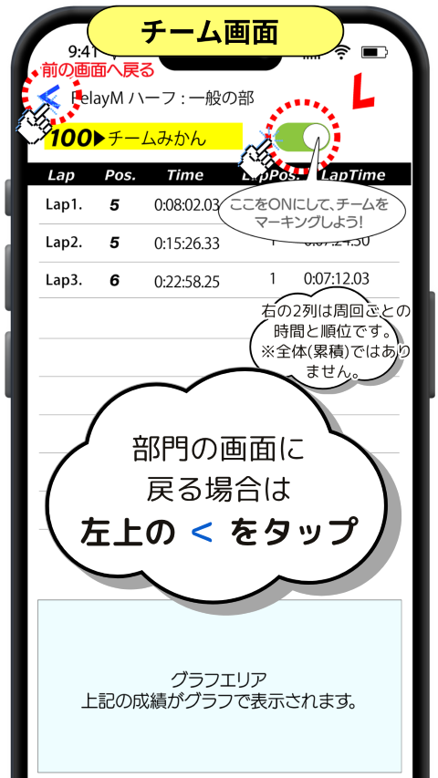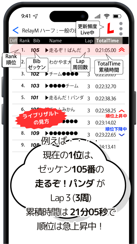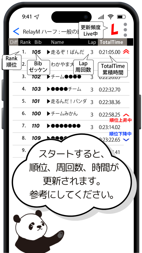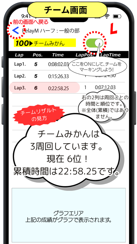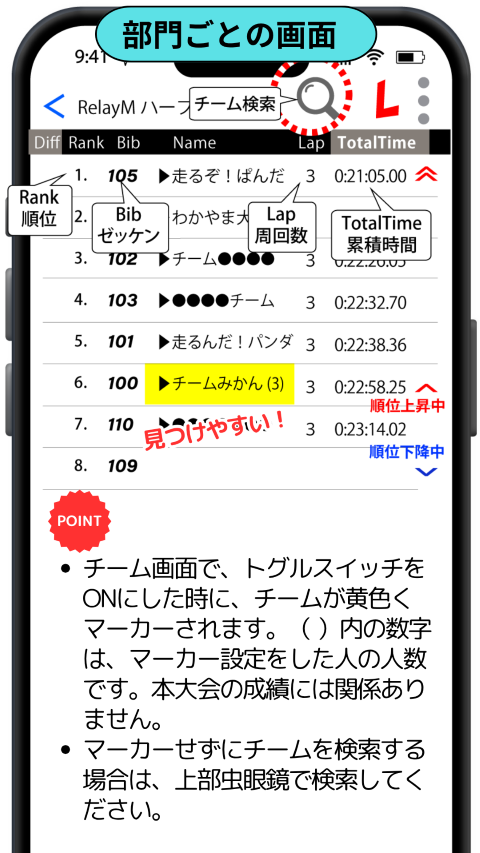 スマートフォンを使って競技の途中結果(順位)や周回数を確認できるアプリです。チームで記録管理の参考にご利用ください。アプリは、下記QRよりダウンロードし、スライドの説明をご参考にご利用ください。